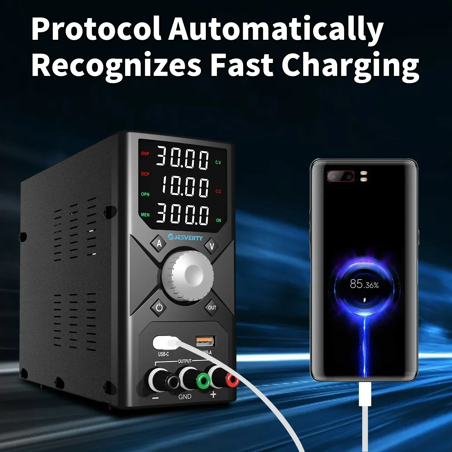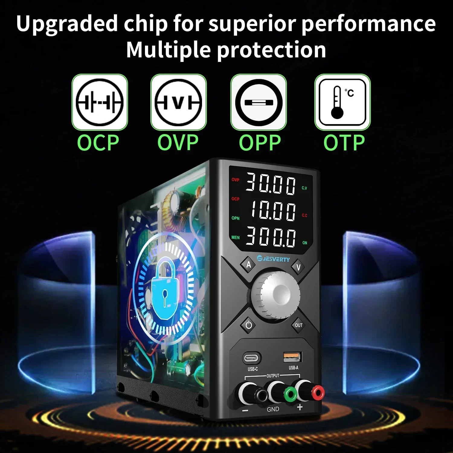 【Small and Light】: Jesverty SPS-X adjustable power supply is more compact, measuring only 7.28 (D) x3.35 (W) x6.29 (H) inches and weighing about 2.5 pounds, which can greatly save valuable space on the workbench. It is very suitable for applications such as laboratories, educational venues, factory manufacturing testing, maintenance repairs, battery charging, anodizing, electronic work DIY, etc.